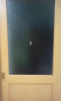 ↑この写真、リビングと玄関の間にあるドアなんですが、もう少し近くに寄ってみると…?